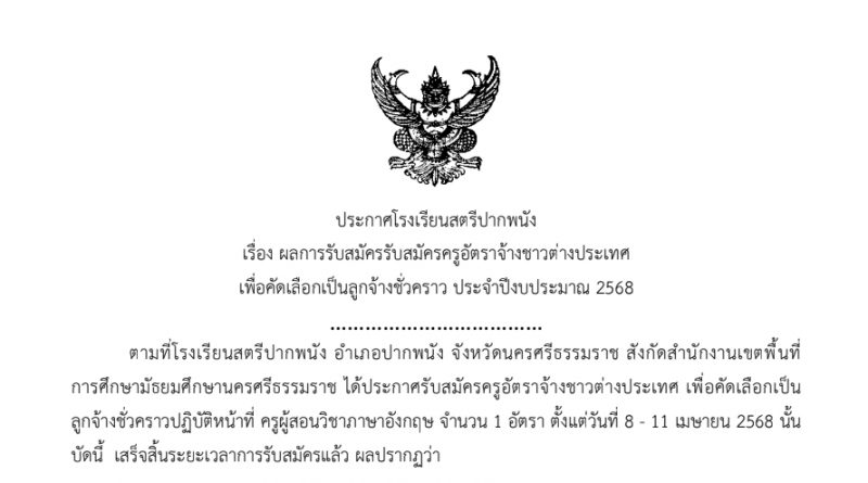 ประกาศโรงเรียน 25 เมษายน 2025 ครูทิพย์สุรีย์ คงแก้ว ผลการสอบคัดเลือกครูอัตราจ้างชาวต่างประเทศ Read More
