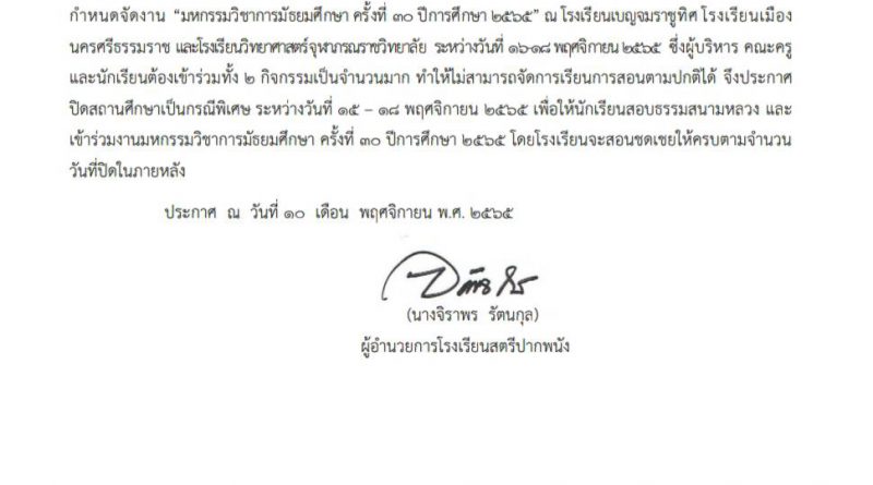 ไม่มีหมวดหมู่ 14 พฤศจิกายน 2022 คุณวุฒิ สุขพิทักษ์ ประกาศโรงเรียนสตรีปากพนัง เรื่องการปิดสถานศึกษาเป็นกรณีพิเศษ ระหว่างวันที่ 15 ถึง 18 พฤศจิกายน 2565 Read More