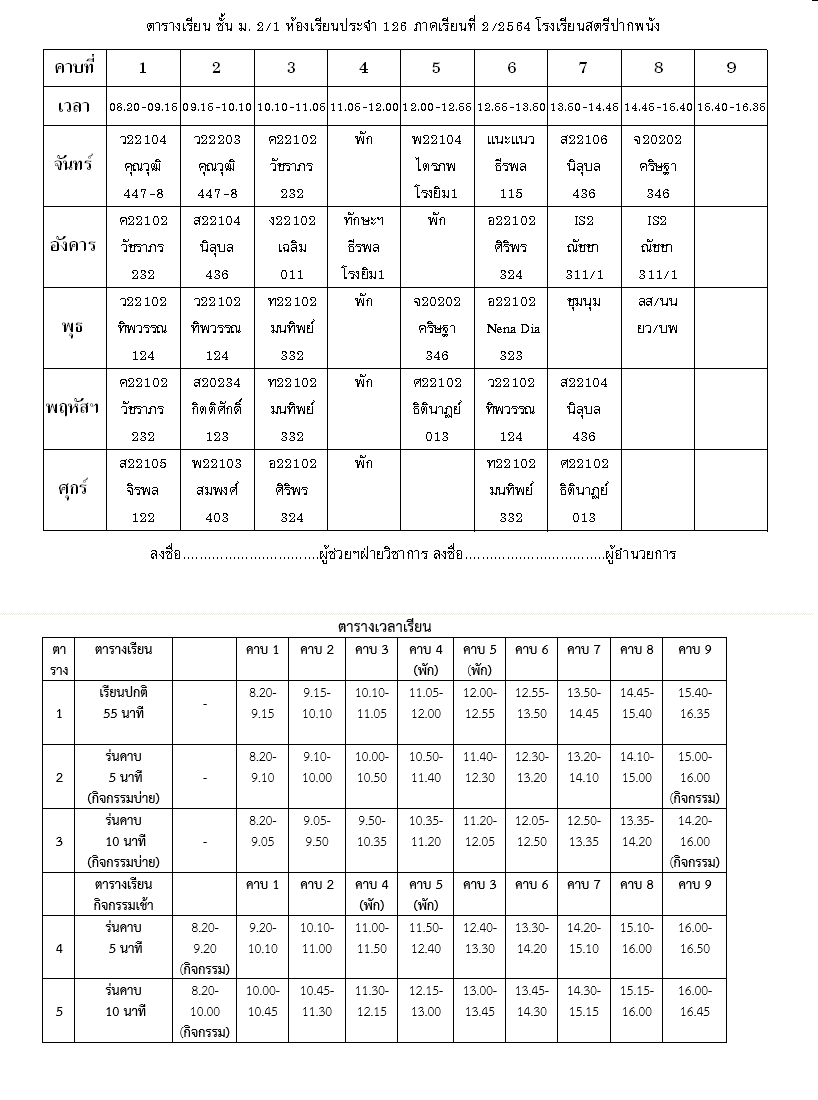 ข้อมูลพื้นฐานตารางเรียนไม่มีหมวดหมู่ 28 ตุลาคม 2021 คุณวุฒิ สุขพิทักษ์ ตารางเรียนโรงเรียนสตรีปากพนัง ปีการศึกษาที่ 2 / 2564 (ม.2) ม.2/1 ม.2/2 ม.2/3 ม. Read More