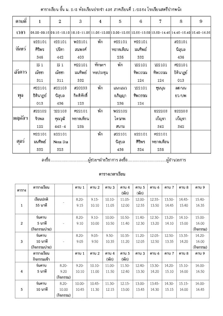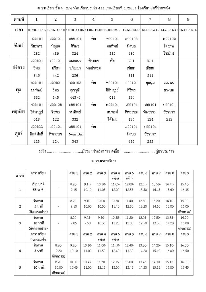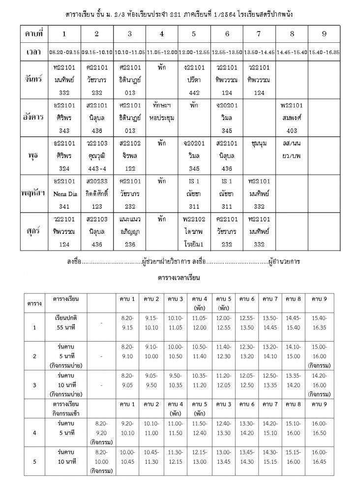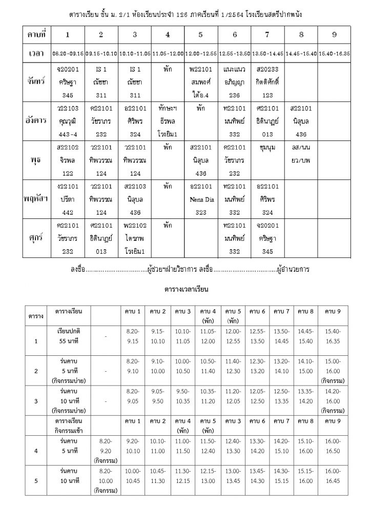 ตารางเรียนไม่มีหมวดหมู่ ตารางเรียนโรงเรียนสตรีปากพนัง ปีการศึกษาที่ 1 / 2564 (ม.2) 3 มิถุนายน 2021 คุณวุฒิ สุขพิทักษ์