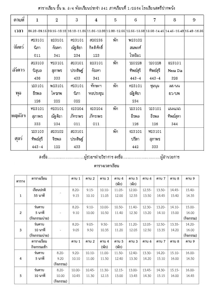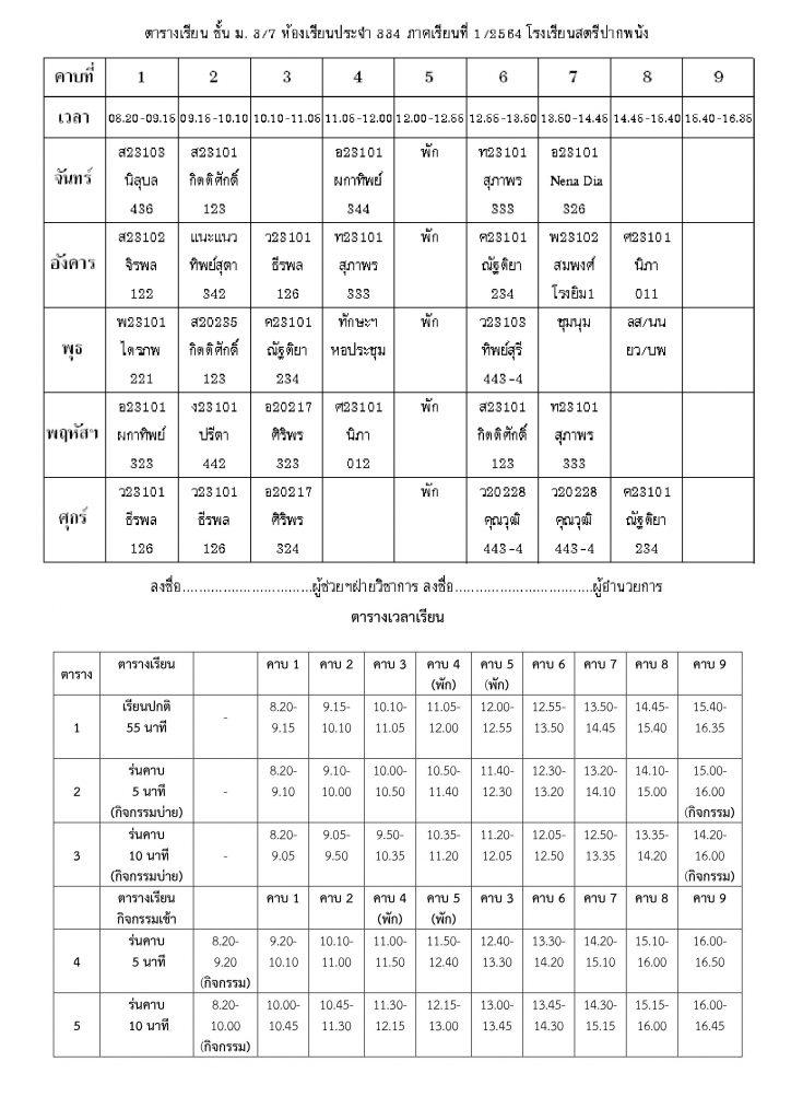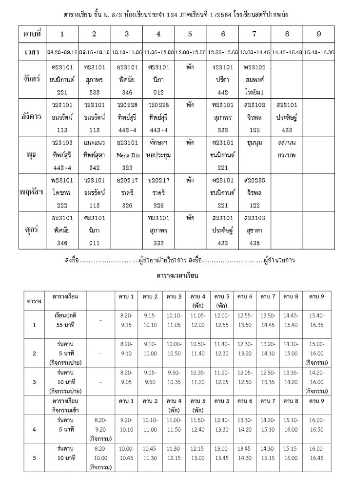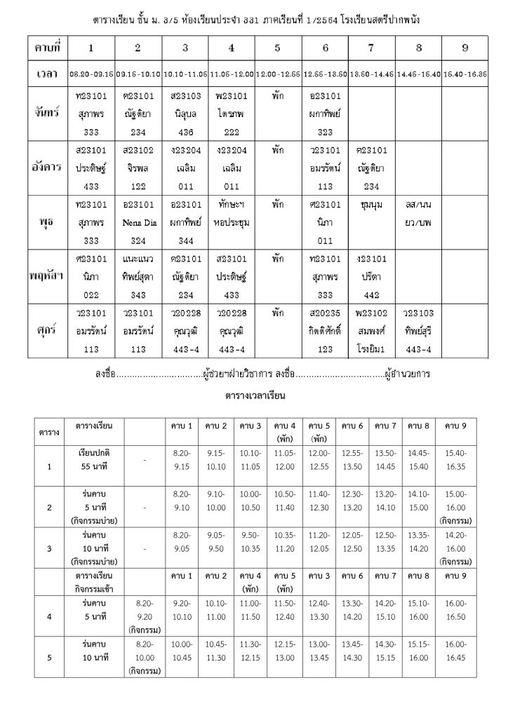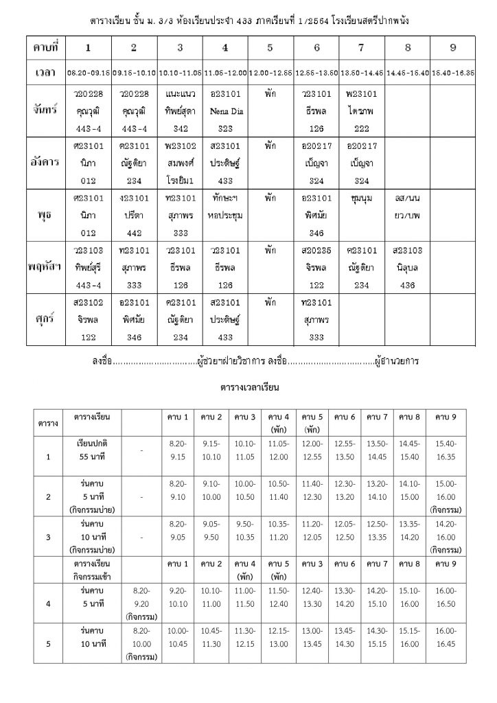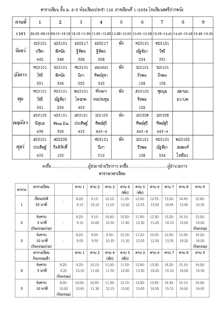 ตารางเรียน ตารางเรียนโรงเรียนสตรีปากพนัง ปีการศึกษาที่ 1 / 2564 (ม.3) 3 มิถุนายน 2021 คุณวุฒิ สุขพิทักษ์