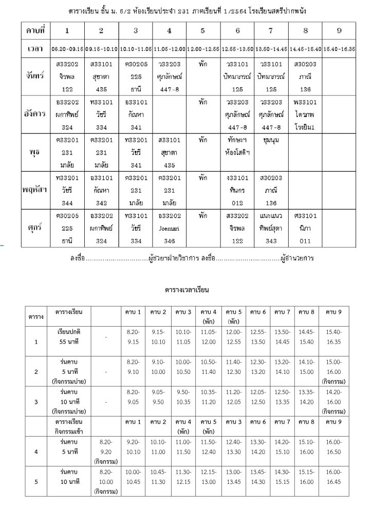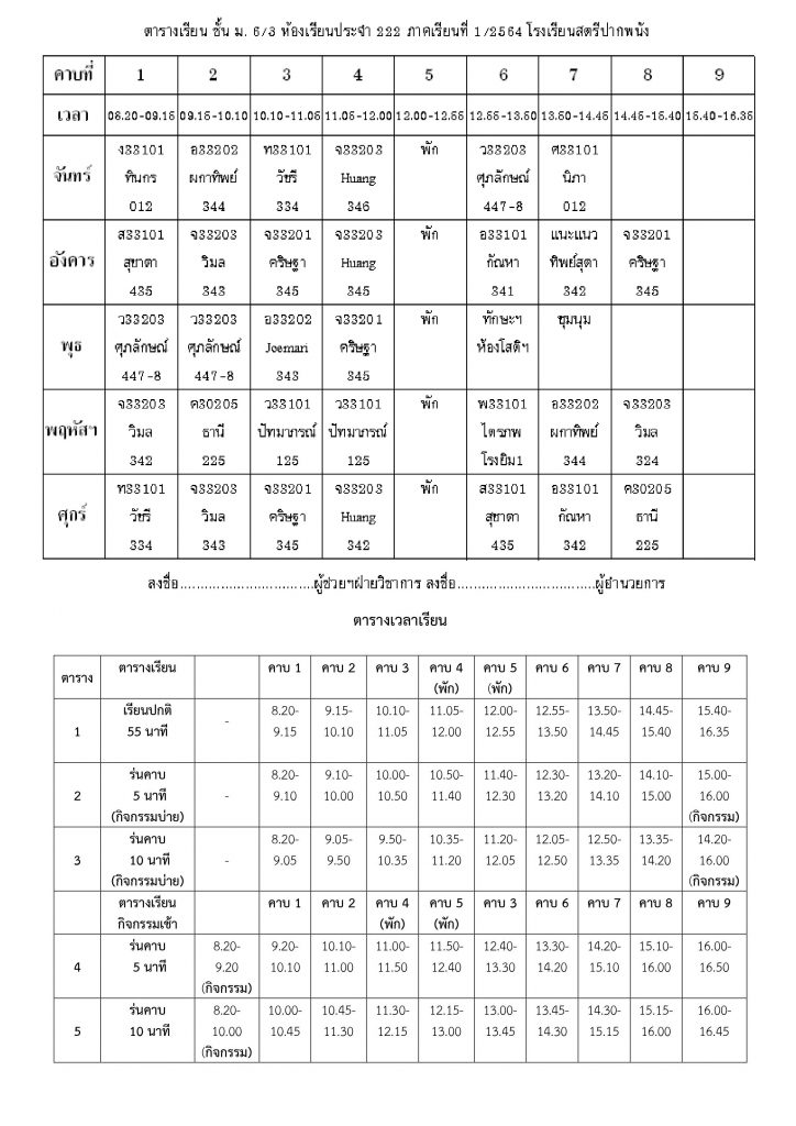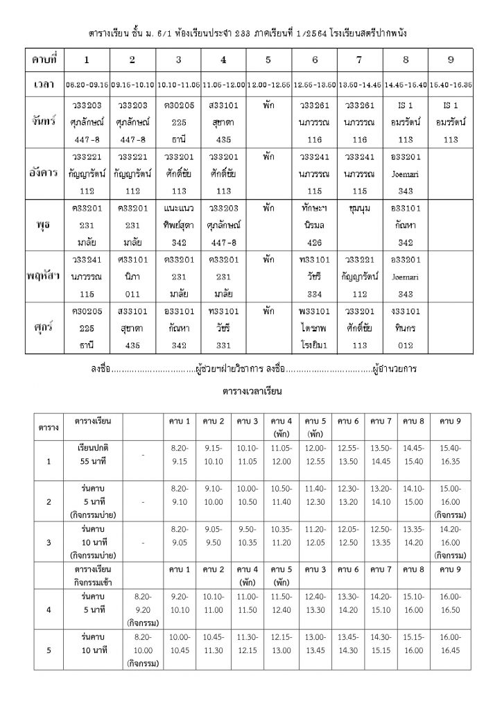 ตารางเรียน ตารางเรียนโรงเรียนสตรีปากพนัง ปีการศึกษาที่ 1 / 2564 (ม.6) 3 มิถุนายน 2021 คุณวุฒิ สุขพิทักษ์