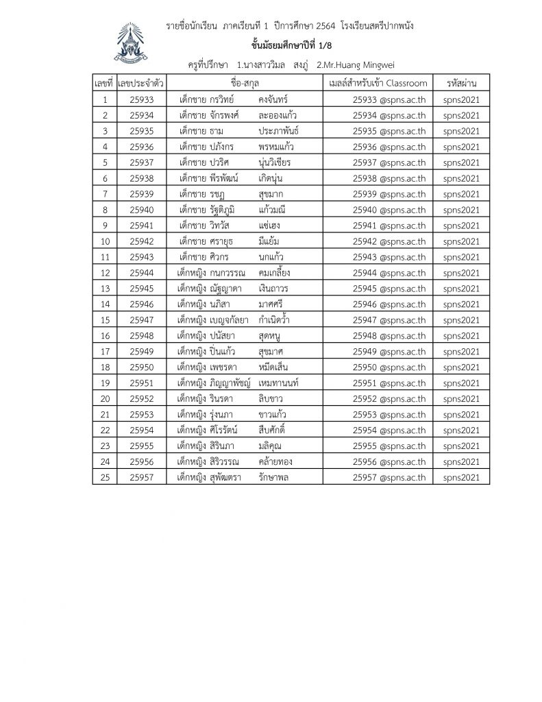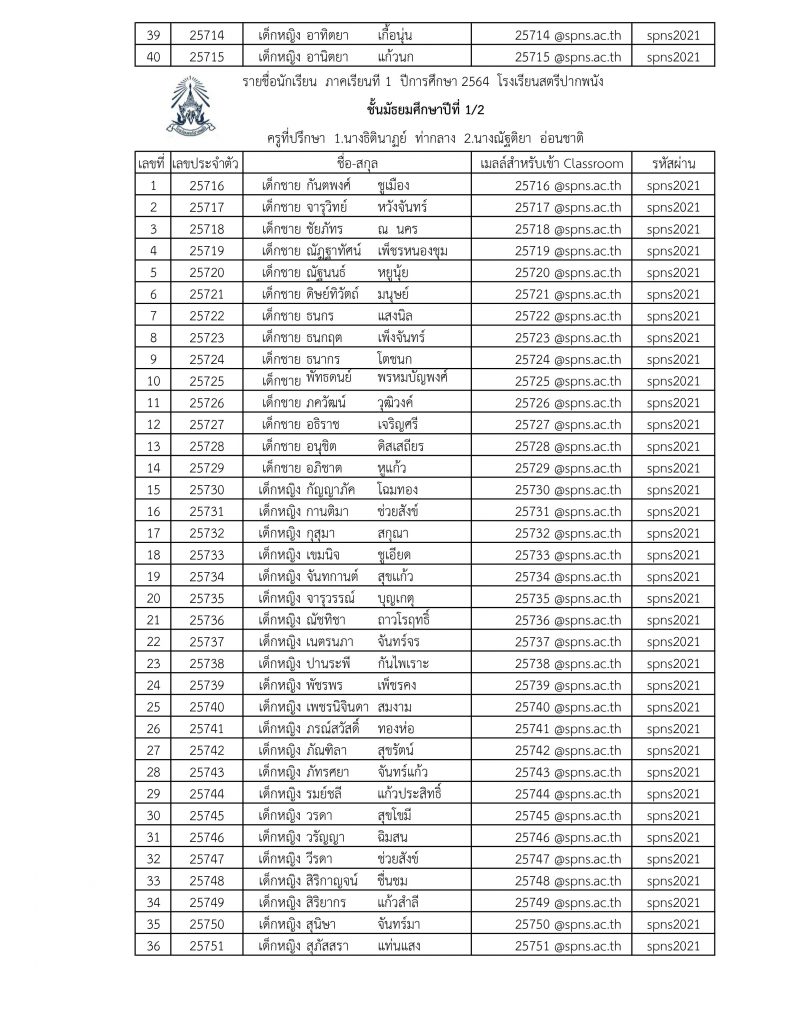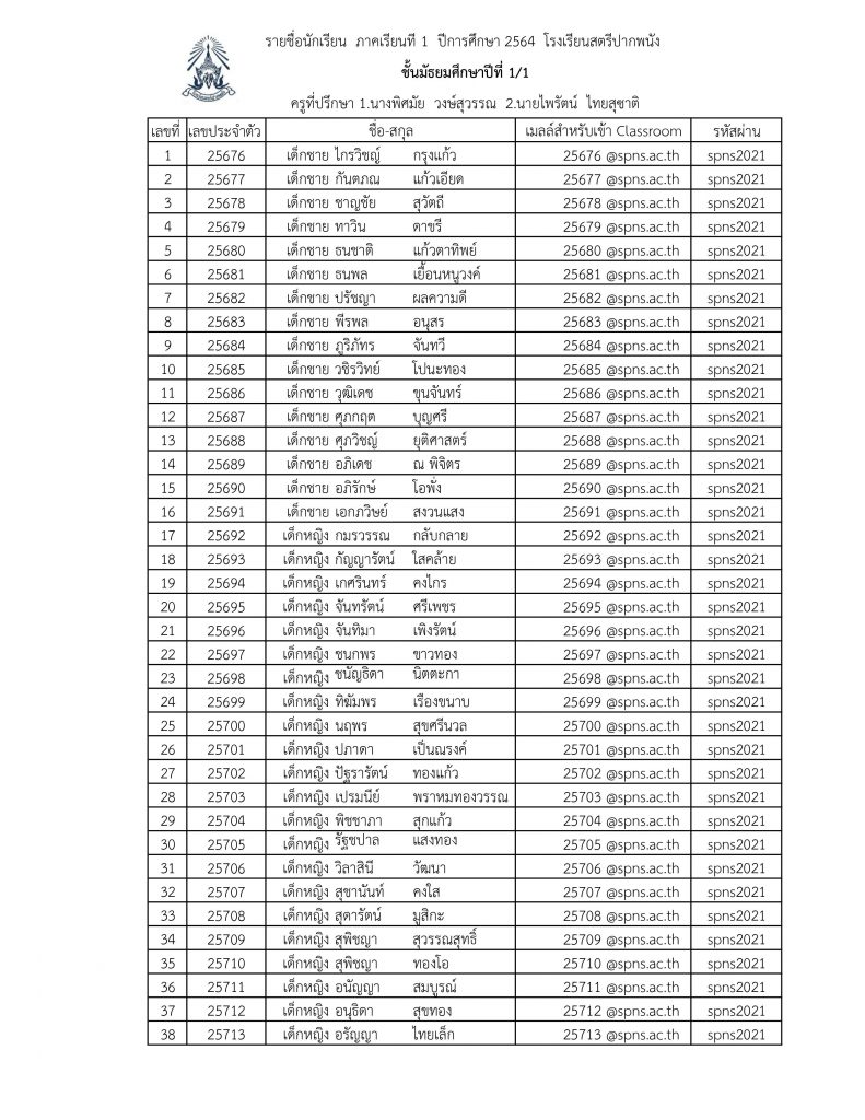 ข่าวประชาสัมพันธ์ ประกาศรายชื่อแยกห้อง ม.1 ปีการศึกษา 2564 โรงเรียนสตรีปากพนัง (ล่าสุด) 8 มิถุนายน 2021 คุณวุฒิ สุขพิทักษ์ ดาวน์โหลดเอกสาร