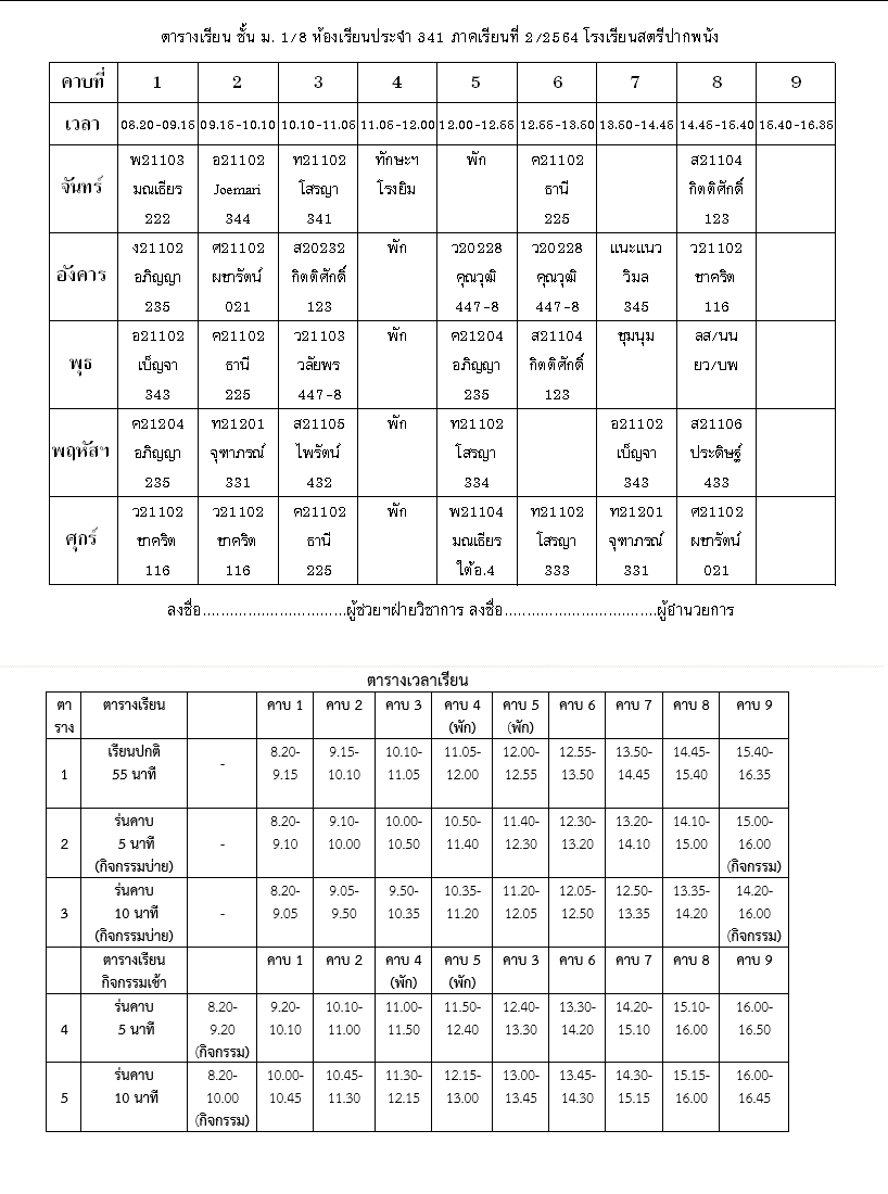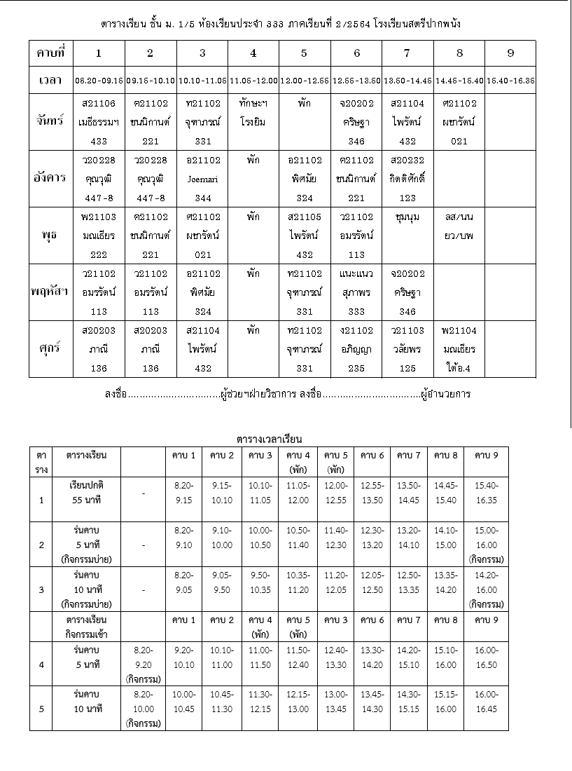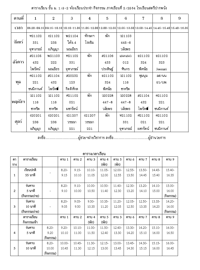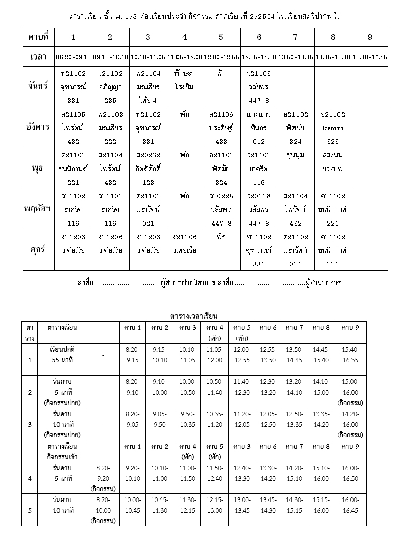 ข่าวประชาสัมพันธ์ตารางเรียนไม่มีหมวดหมู่ ตารางเรียนโรงเรียนสตรีปากพนัง ปีการศึกษาที่ 2 / 2564 (ม.1) 28 ตุลาคม 2021 คุณวุฒิ สุขพิทักษ์ ม.1/1 ม.1/2 ม.1/3 นักเรียนช่าง ม.1/3 นักเรียนบัญชี ม.1/4 ม.1/5 ม.1/6 ม.1/7 ม.1/8