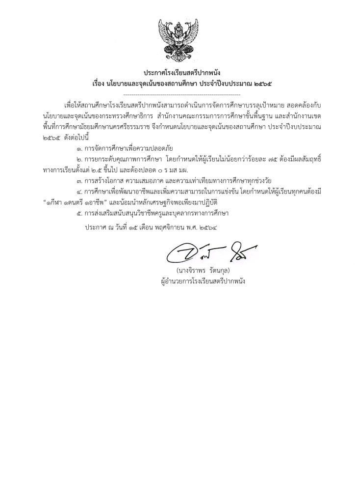 ข่าวประชาสัมพันธ์ ประกาศโรงเรียนสตรีปากพนัง เรื่องนโยบายและจุดเน้นของสภานศึกษาประจำปีงบประมาณ 2564 23 พฤศจิกายน 2021 คุณวุฒิ สุขพิทักษ์ รายละเอียดเพิ่มเติม
