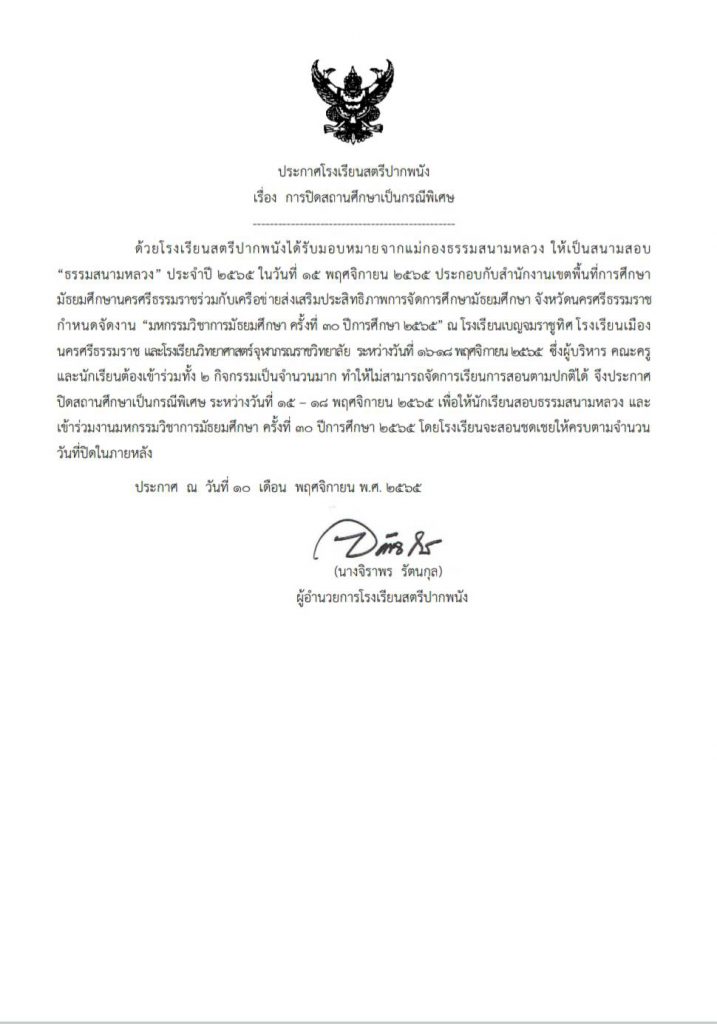 ไม่มีหมวดหมู่ ประกาศโรงเรียนสตรีปากพนัง เรื่องการปิดสถานศึกษาเป็นกรณีพิเศษ ระหว่างวันที่ 15 ถึง 18 พฤศจิกายน 2565 14 พฤศจิกายน 2022 คุณวุฒิ สุขพิทักษ์