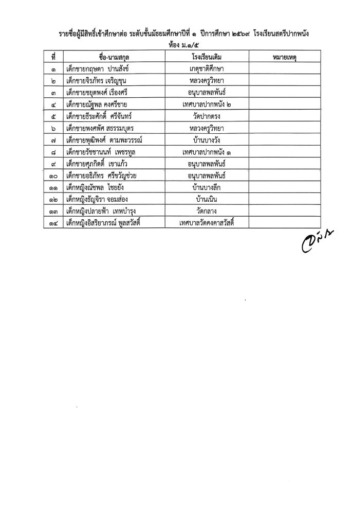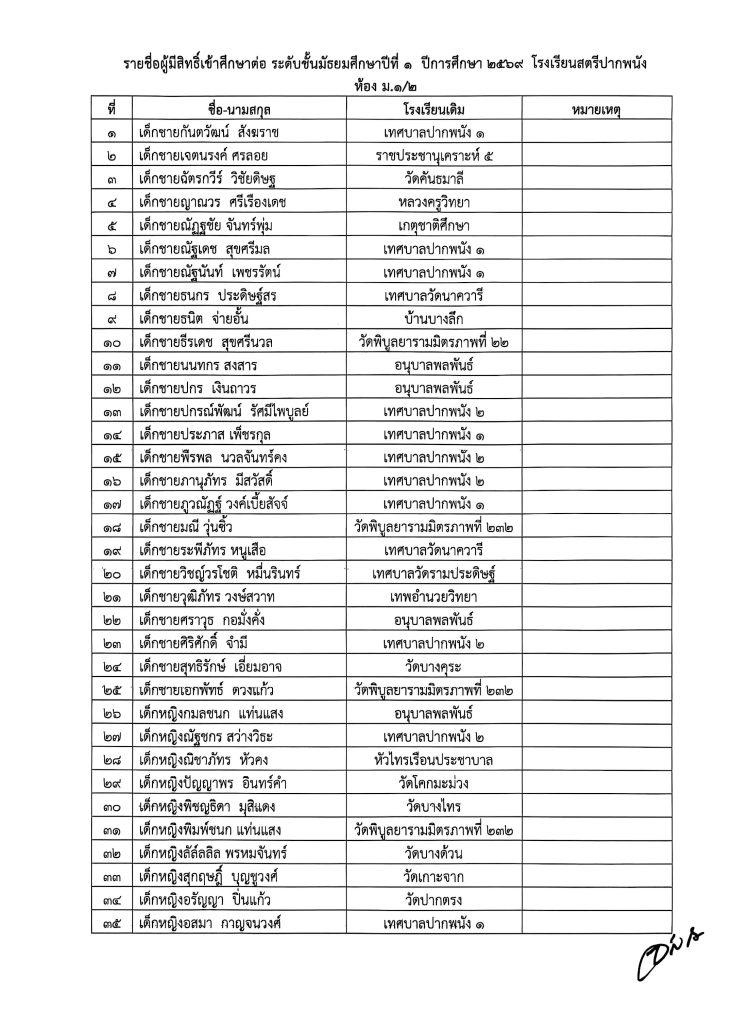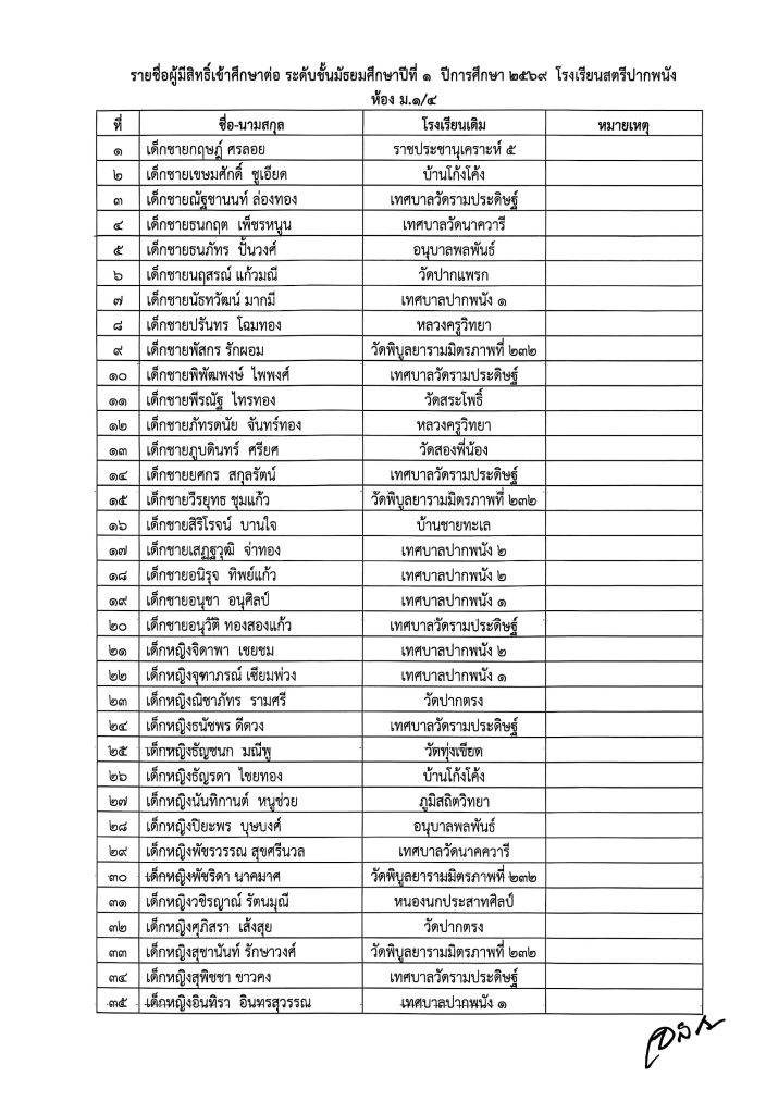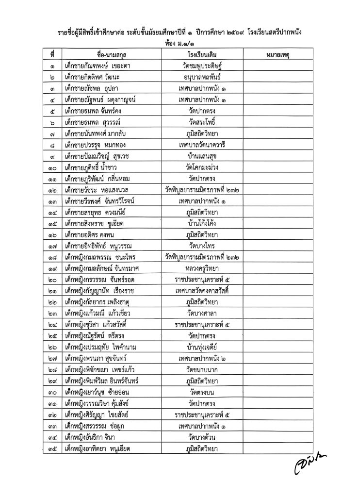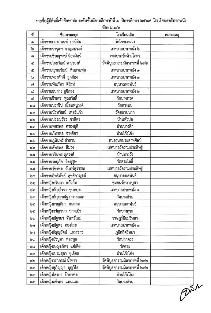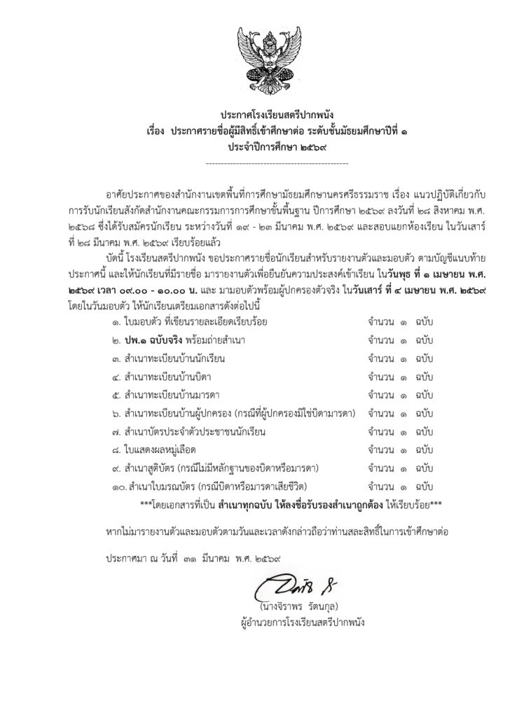 ประกาศโรงเรียน ประกาศรายชื่อนักเรียนที่มีสิทธิ์เข้าศึกษาต่อ ชั้นม.1 ปีการศึกษา 2569 31 มีนาคม 2026 ครูทิพย์สุรีย์ คงแก้ว